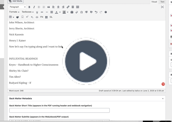 As I’m typing along, I type some text that I wish to link. I select it, open the link dialog, and paste in the link. Hit enter, and the dialog does not close. It keeps the text selected as well as the space before and after it and I have no way to continue typing without all the new text I type being part of the link text. The esc key doesn’t help. I can click in the editor and make the dialog go away, but when I start typing again, the dialog returns and continues the link text.