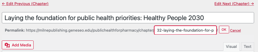 I have a digital PDF export of a text with manually created internal links that wouldn’t work–only some and not others. Then I realized the links that weren’t working all began with a number (‘beginning’ meaning the beginning of the perma-link that can be edited in each chapter). All of the links function fine on the web, but when exported as an xhtml (and presumably as the PDF) an extra word gets added into the internal anchor tag before the numeral, making the manually hyperlinked text not work