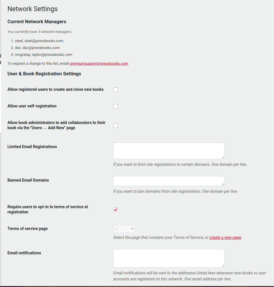 Second, we’re now sending all ‘transactional’ emails for hosted networks (like when notifications are sent for new user or new book registrations) from noreply@pressbooks.com to reduce the likelihood that they’ll be flagged as spam.