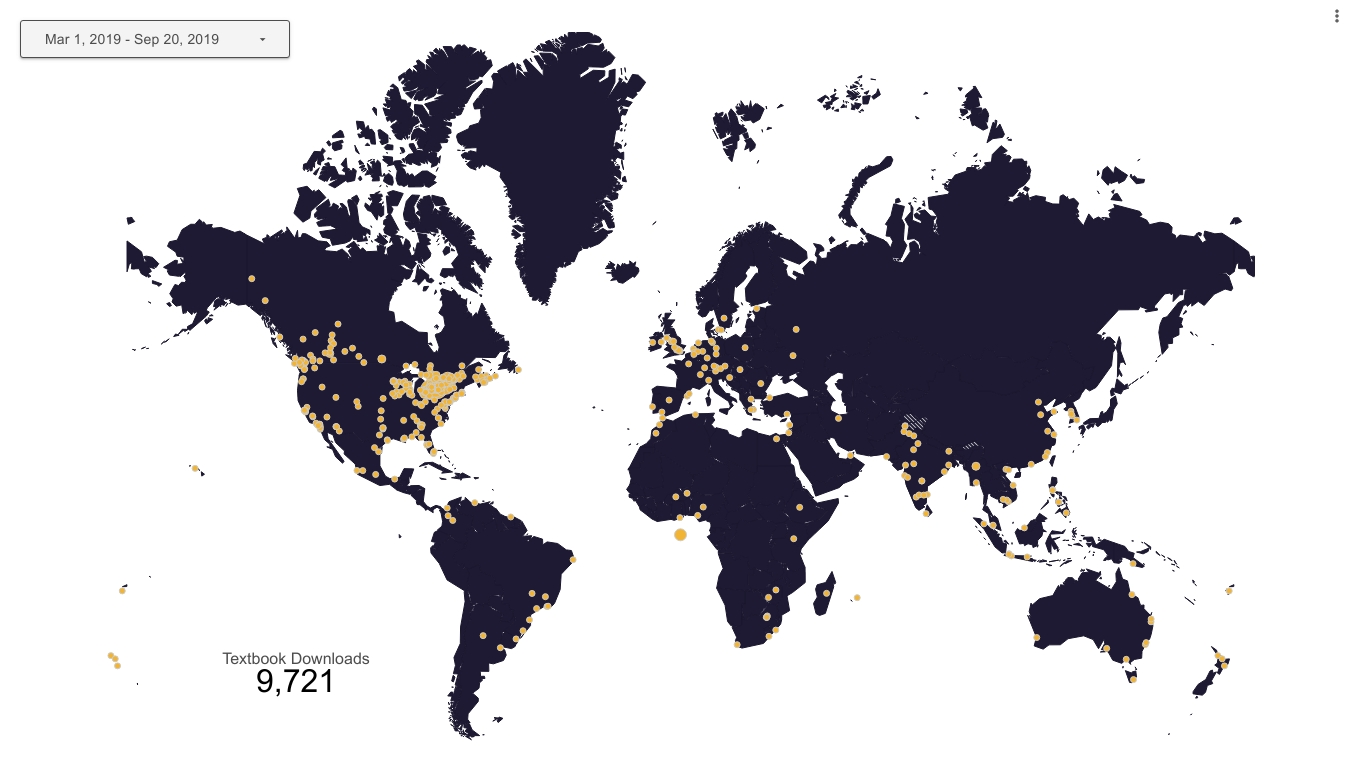 Hey Karen! Here’s a map we made of downloads from our Open Library and Pressbooks.